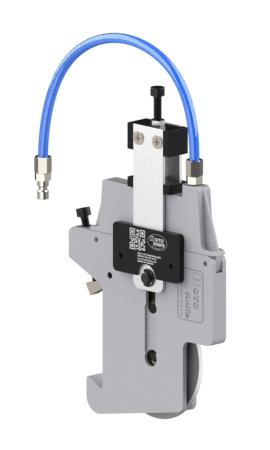 MT-A660 pneumatic shear-type knife-holder equips two sets of the manual valve which able to individually or be linked to control the downstroke and sidestroke.
