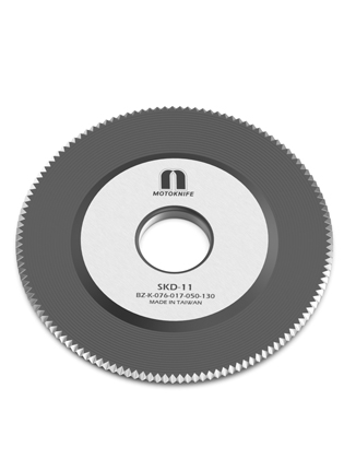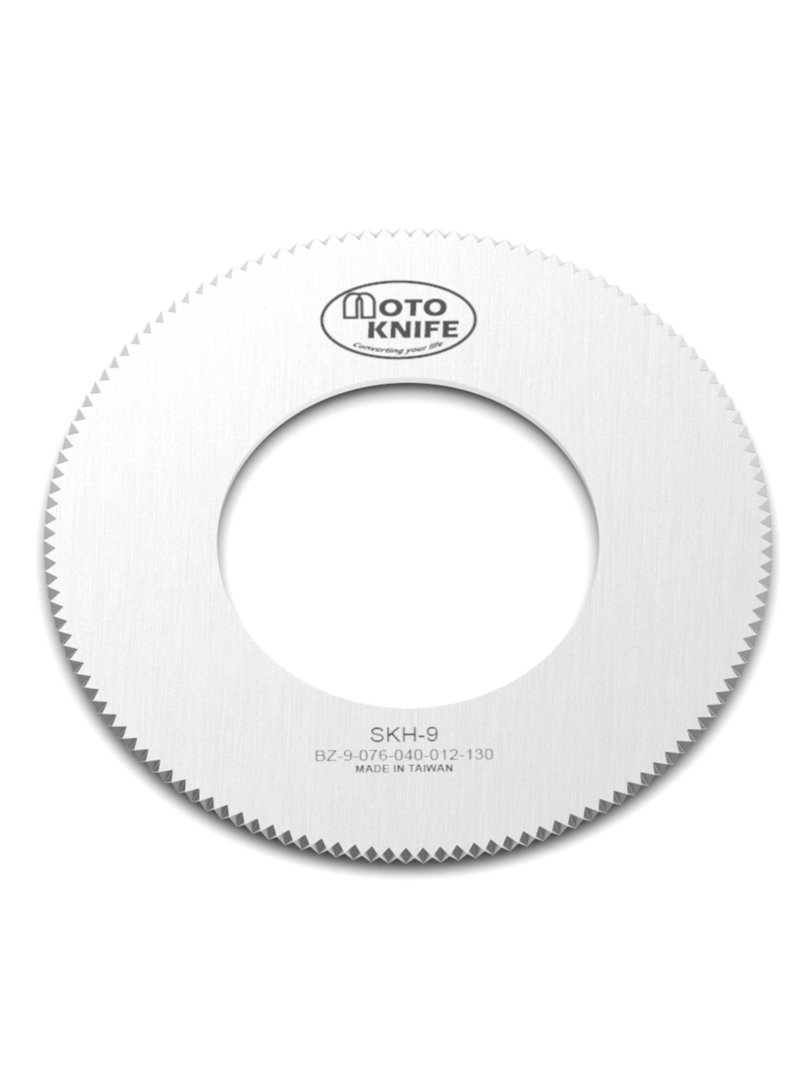 The 130 teeth zigzag blade is made of high-speed steel (HSS) imported from Europe, processed by well heat treatment to increase its mechanical properties such as toughness and wear resistance. The blade tip is precisely ground to maintain an equal tooth pitch and peak, the slitting edge will generate the zigzag notch, to facilitate tearing along the notch. The zigzag blade is suitable for easy-tear applications such as medical tapes.